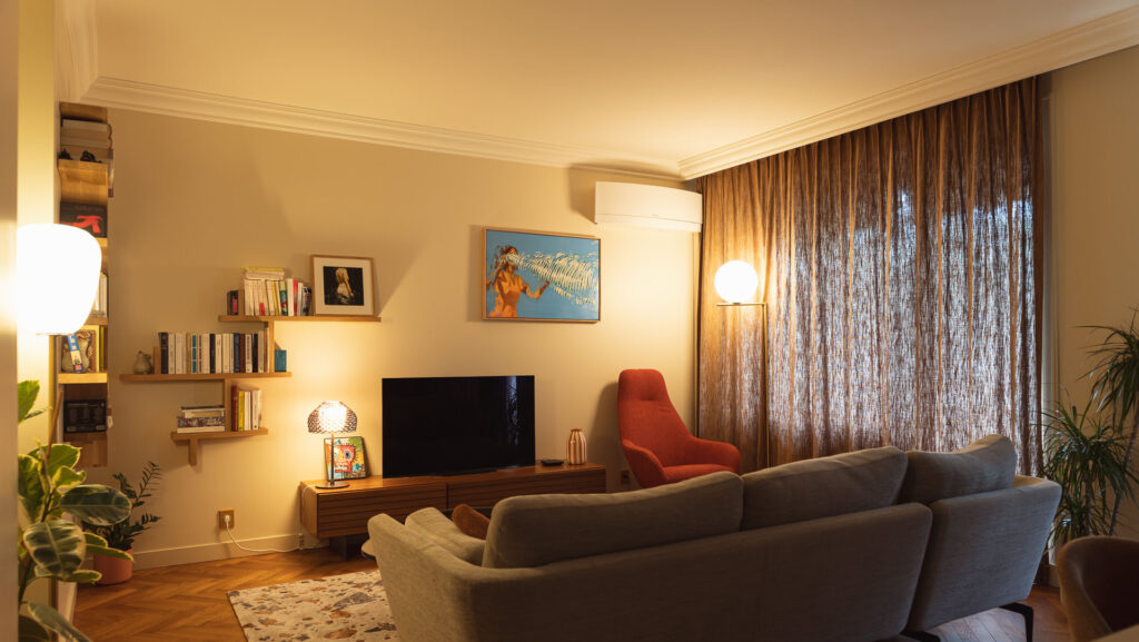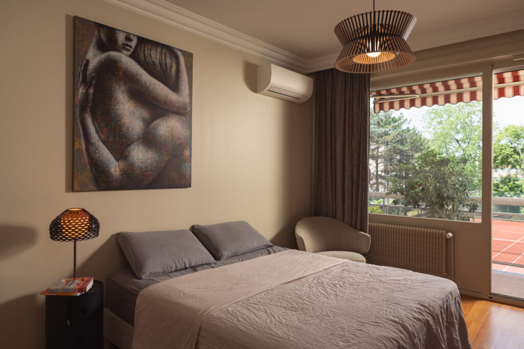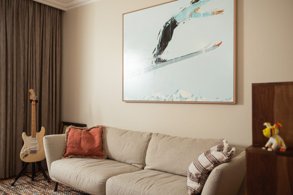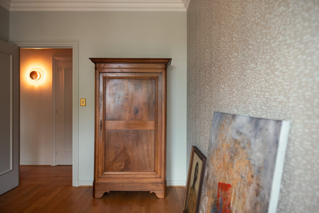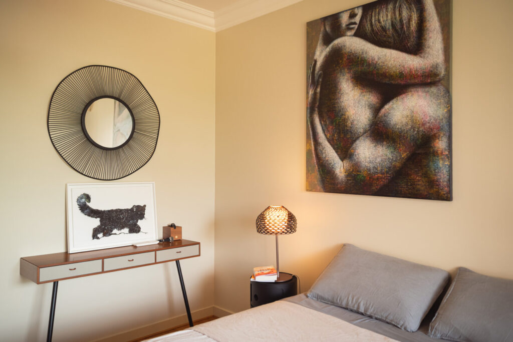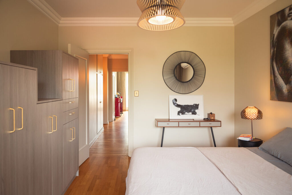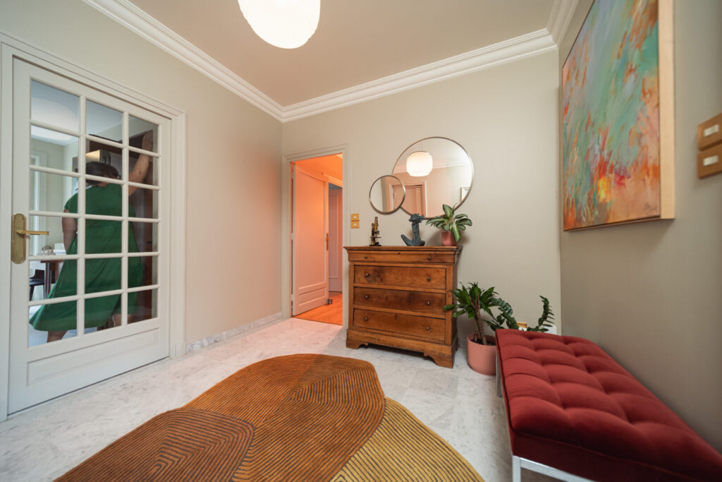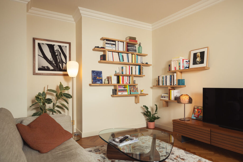 Le client a obtenu un appartement à la fois lumineux et plus fonctionnel. Étant passionné par la peinture et la photographie, il était essentiel que les murs demeurent discrets pour mettre en valeur ses œuvres. Nous avons opté pour des teintes simples sans rester cantonnés au blanc.